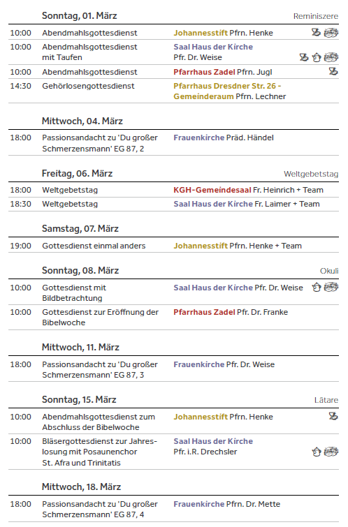 Aktuelle Gottesdienste ab 01.03.2026